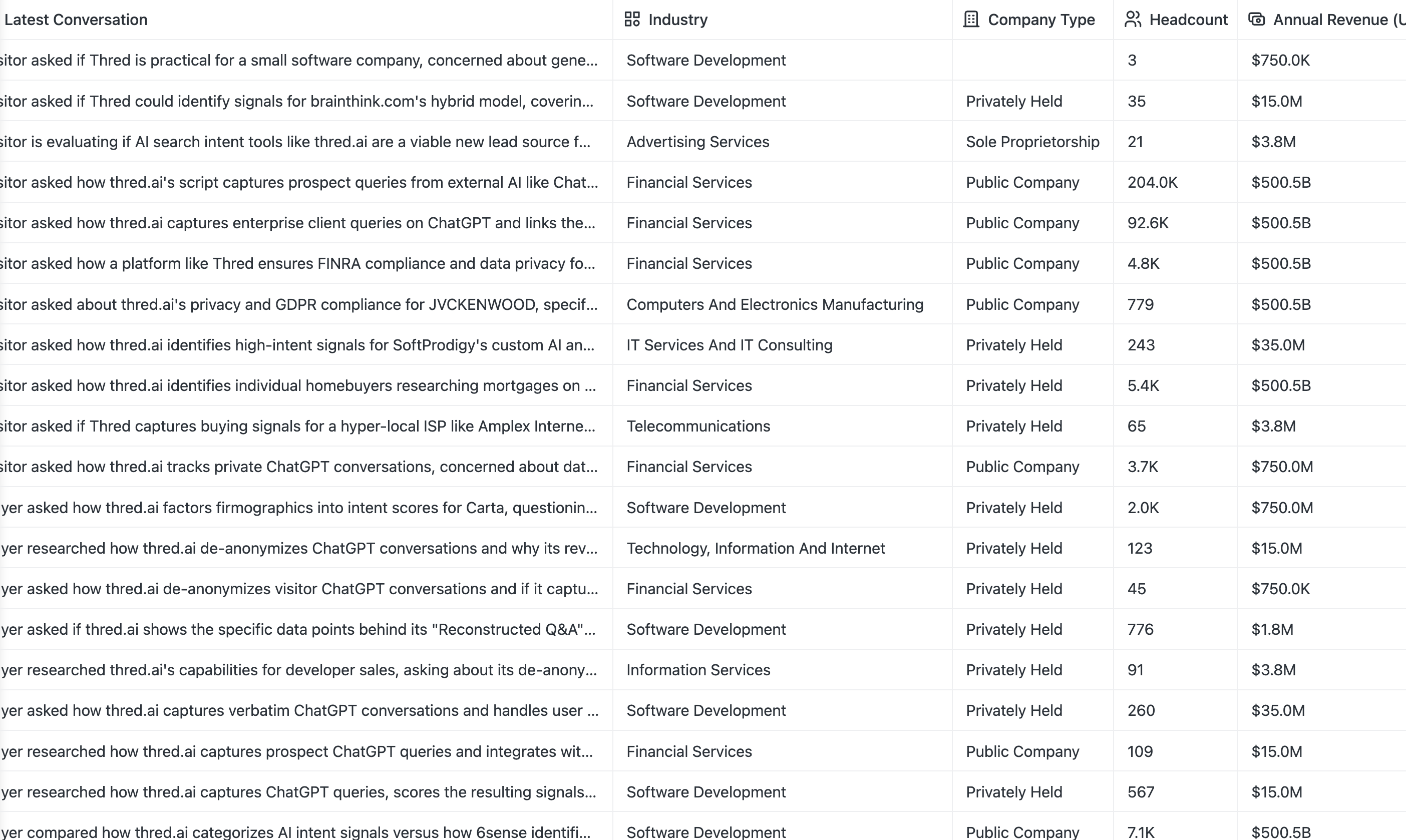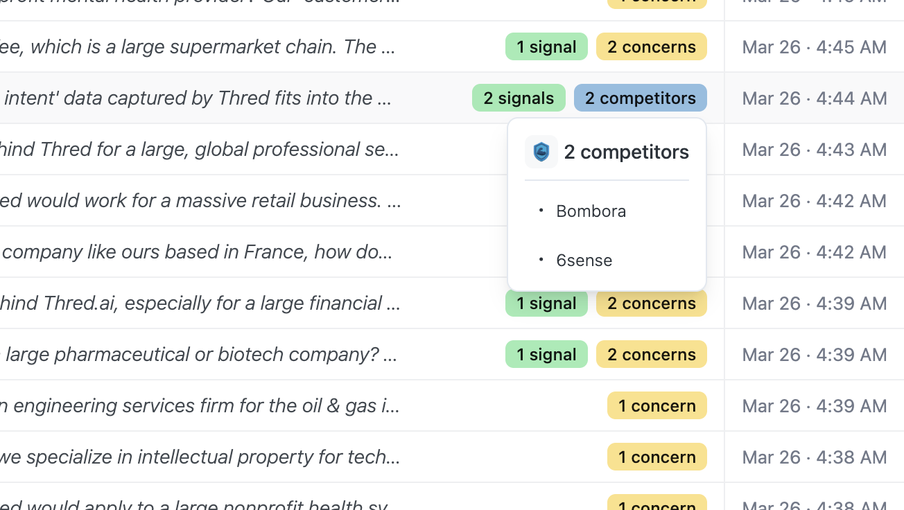 Thred monitors what businesses are searching in AI platforms and turns it into realtime intent signals for your team.